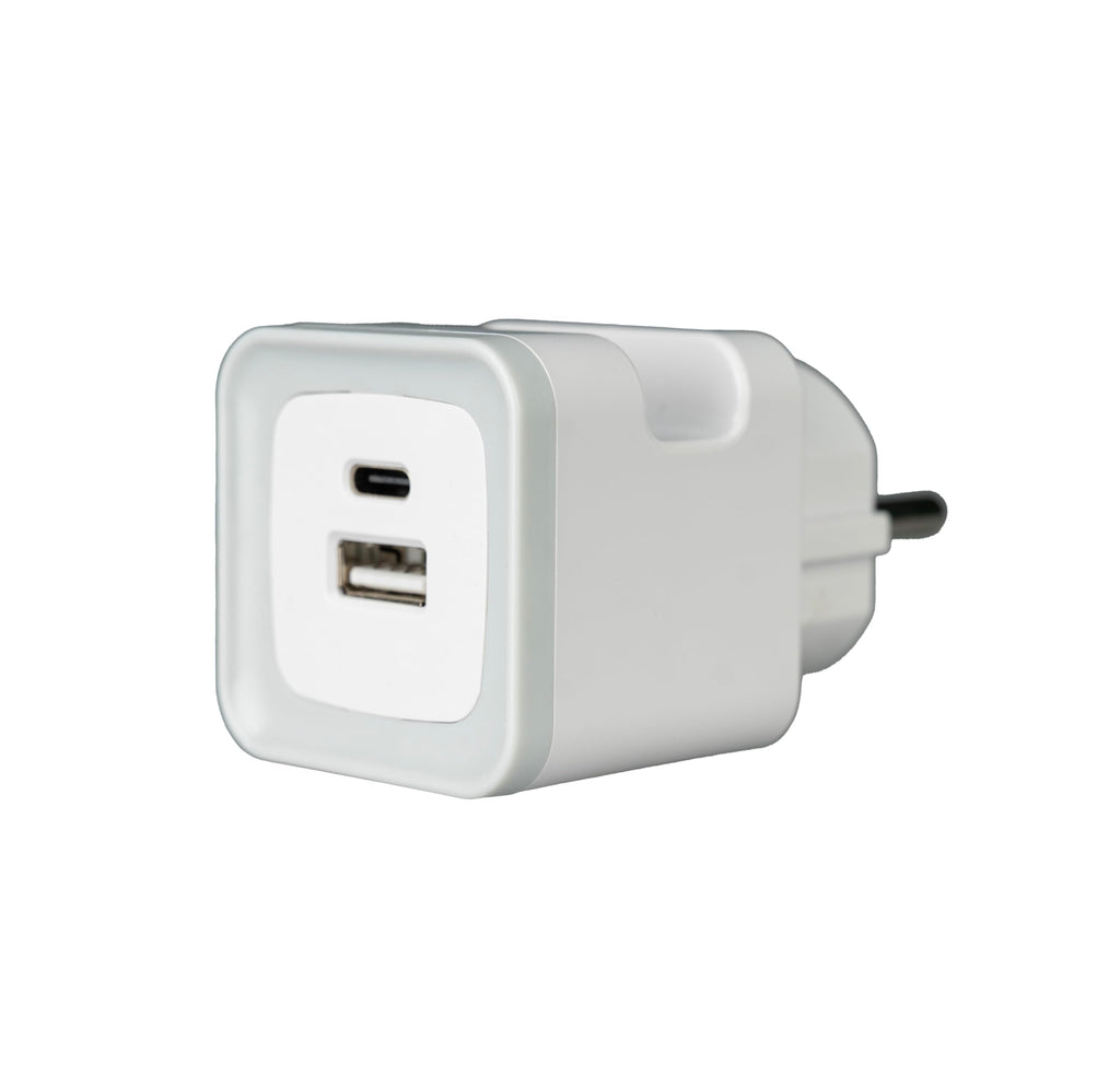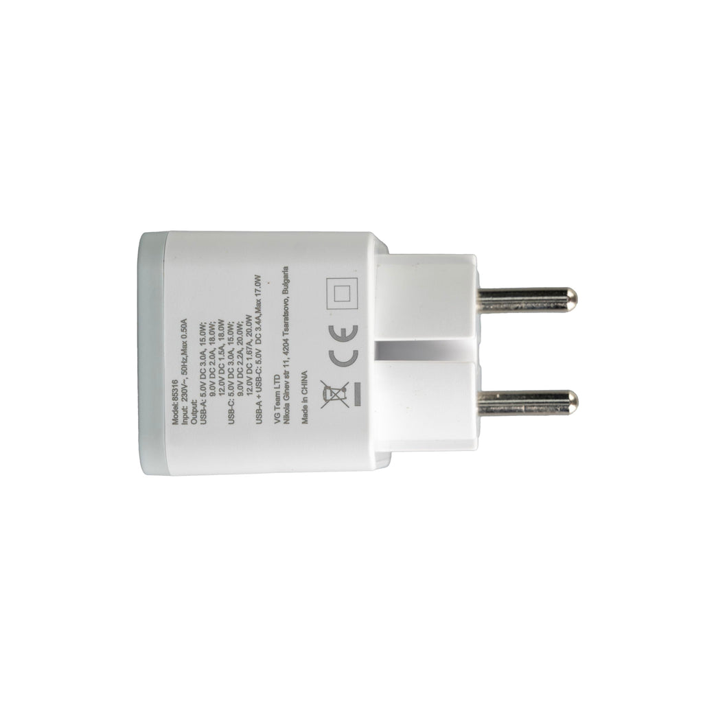 ? Kompakter Vertikaler Steckdosenadapter mit USB A & C