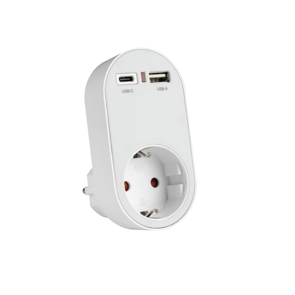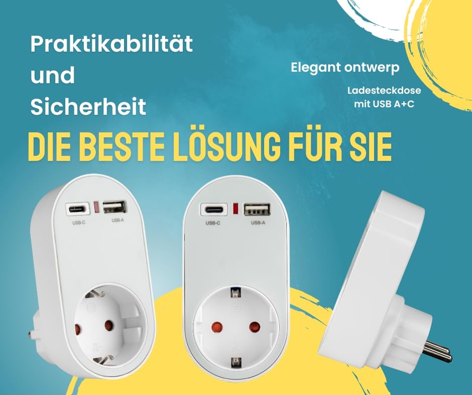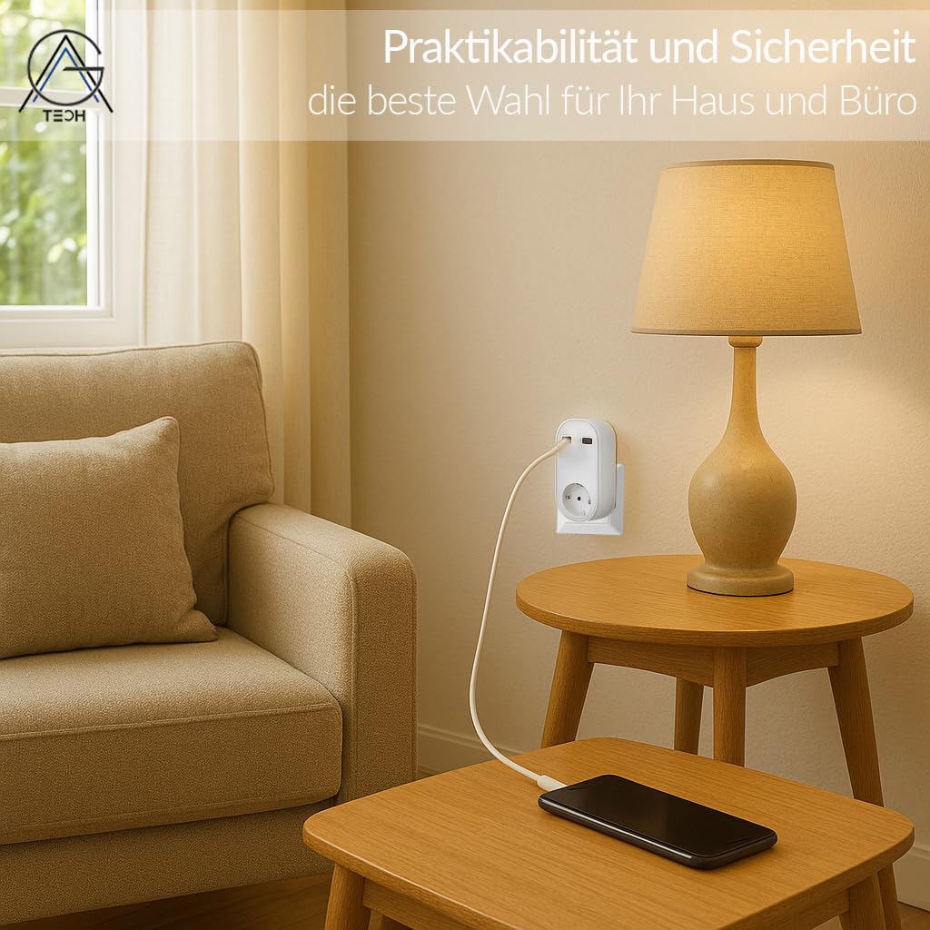 Dieser platzsparende Adapter verwandelt eine einfache Steckdose in eine leistungsstarke Ladestation. Ideal für Zuhause, Büro, Küche oder auf Reisen.