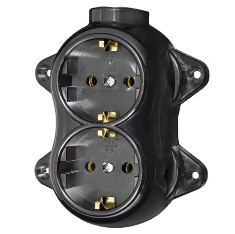• Aufputz Vintage 2-fach Steckdose Rund Retro Oberflache Installation