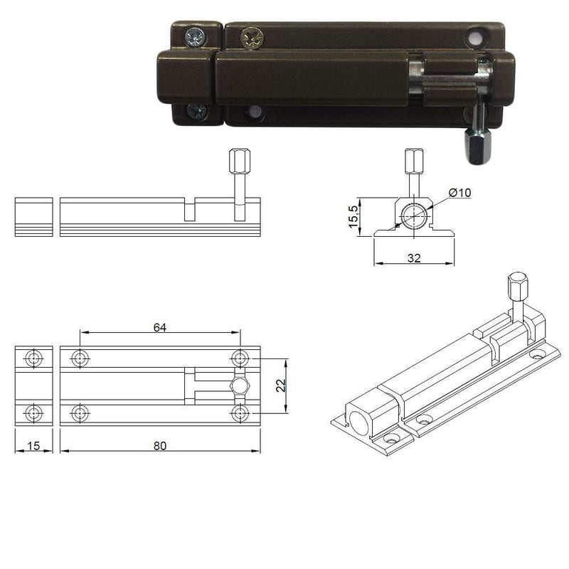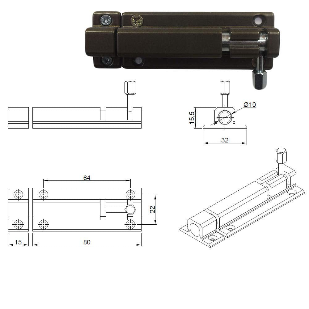 Größe:80 mm Antik Massive und schwere Ausführung 1 Stück Bolzenriegel Weiss oder Antik( Braun), Durchmesser von 6-10 mmVerriegelung von Badezimmern, Schlafzimmern und Geschirrschränke
