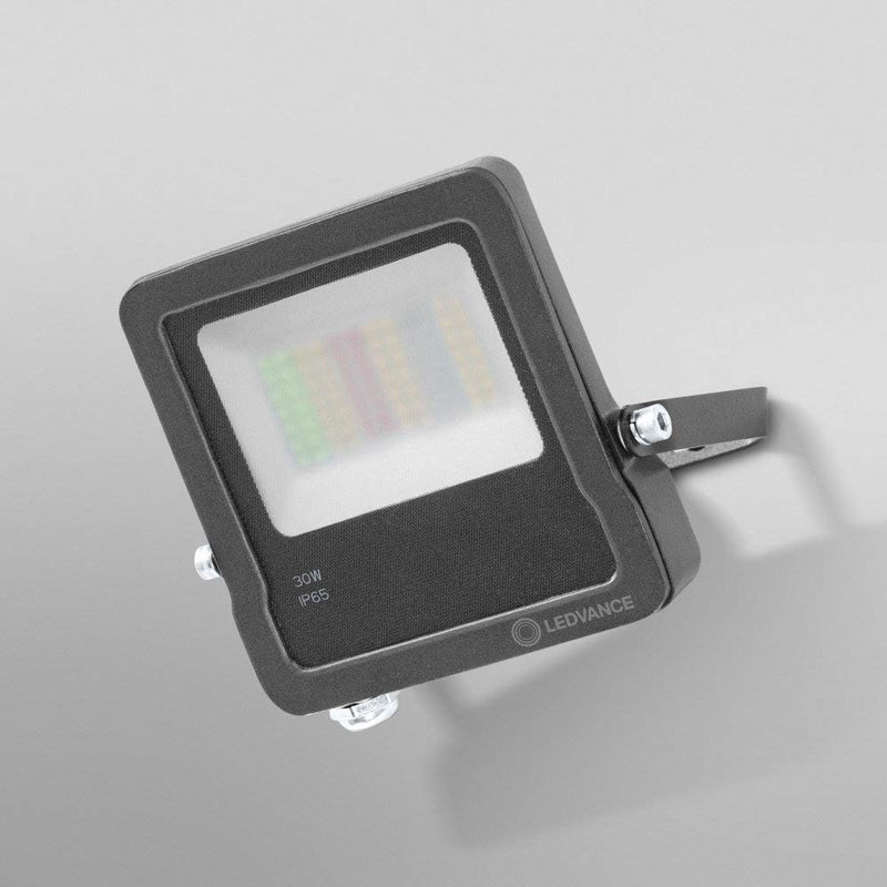 Stilbezeichnung:WiFi Version | Größe:30 Watt | Farbe:Rgbw-farben Änderbar Fluter mit WiFi-Technologie. Produkteigenschaften: Steuerung über LEDVANCE SMART + App (ab Android 6.0). Steuerung über Google Assistant oder Amazon Alexa möglich. RGB-Farbsteuerung, ca. 16 Mio. Farbmöglichkeiten einstellbar. Dimmbar. Farbtemperatur: 3.000 K (Warm White). Netzwerkprotokoll: WiFi. Montagebügel mit Rotationsbereich von bis zu 180. Schutzart: IP65. Verbindung mittels 0.5m Kabel, Verkabelung notwendig. Produktvorteile: Einfache und schnelle Installation. Farbenreiche Gartenbeleuchtung mit smarten Steuerungsmöglichkeiten. Vereint die Funktionalität von Allgemeinbeleuchtung und Stimmungsbeleuchtung. Anwendungsgebiete: Anstrahlung von Fassaden. Technische Ausstattung: Tragbügel enthalten. Inklusive Montageschrauben und Dübel. Steuerung über App oder Sprachsteuerung erfordert kompatibles Smart- Home-System. Für die Steuerung über LEDVANCE SMART + WiFi App ist ein Smartphone oder Tablet erforderlich