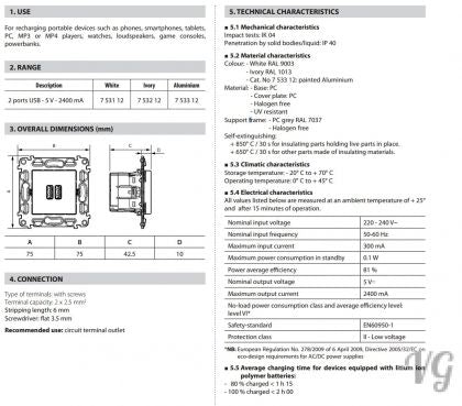 • 100-240 VA 50-60 Hz, 5 V - 1500 mA