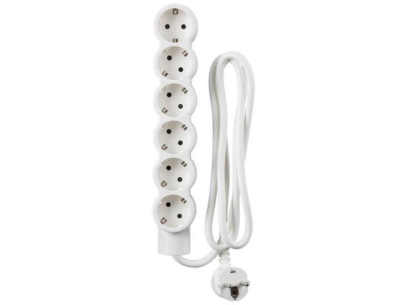 Größe:6-fach (Weiß)  |  Stil:1,5 m Steckdosenleiste MOES Mit den Steckdosenleisten vom Hersteller Legrand können Sie mehrere Geräte flexibel an einer Vorrichtung anschließen. Durch die extra flache Aufbauhöhe von nur 30 mm ist diese Steckdosenleiste ideal zur Montage unterhalb von Möbeln geeignet. Angewendet werden kann sie beispielsweise für Lampen, PCs, Fernseher (TV), Stereoanlagen, etc. Eigenschaften des Produktes: - 6 Steckdosen - Kabellänge: 1,5 m (Artikelnummer:695016) - Ultra flache Ausführung mit einer Aufbauhöhe von nur 30mm - Mit aufgesteckter Befestigungsmöglichkeit für Wand- und Tischmontage - Eine 90° Steckdose für breite Steckernetzteile - 5 Steckdosen sind um 45° gedreht und beiten somit mehr Platz für Ihre Geräte - 16 A Nennstrombelastbarkeit - 3.500 Watt bei 230 Volt - Schutzart: IP 20 - Farbe: Wei