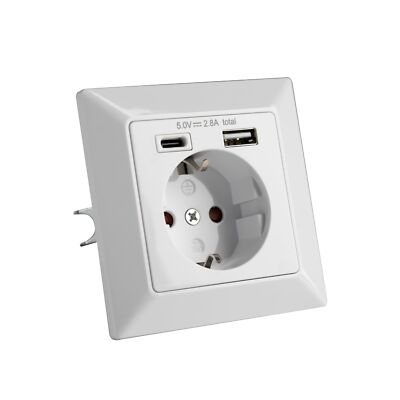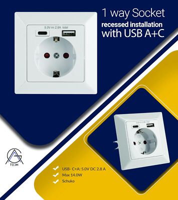 VGTECH Ladesteckdose Unterputz Weiß,1 x USB-A + USB-C 5VDC/2,8A 3680W Typ: Schuko Einbau Steckdose